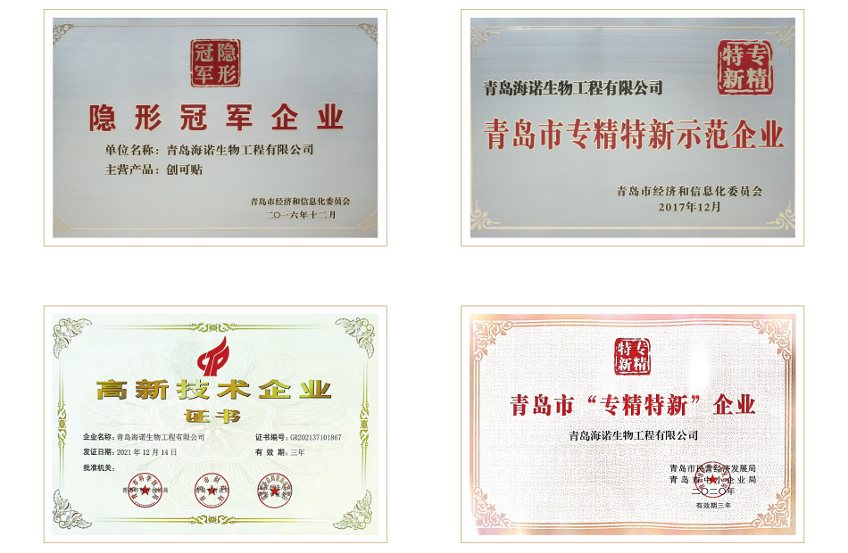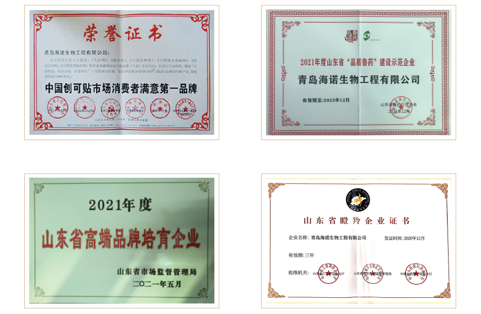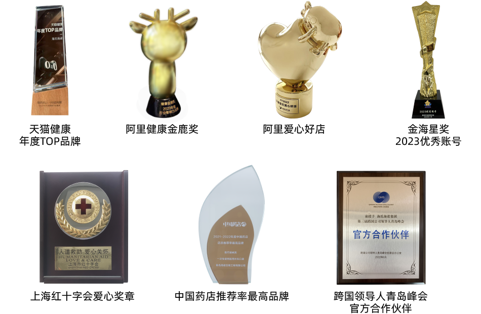 海氏海諾集團(tuán)先后獲得青島市守合同重信用企業(yè)、青島市優(yōu)秀民營企業(yè)、中國醫(yī)用敷料行業(yè)杰出品牌、中國優(yōu)秀民營企業(yè)、中國醫(yī)療器械行業(yè)最具創(chuàng)新活力競爭力前三強(qiáng)企業(yè)、中國馳名商標(biāo)、山東省高端品牌培育企業(yè)、山東省“品質(zhì)魯藥”建設(shè)示范企業(yè)、國家級“專精特新”小巨人等榮譽(yù)和獎項(xiàng)。